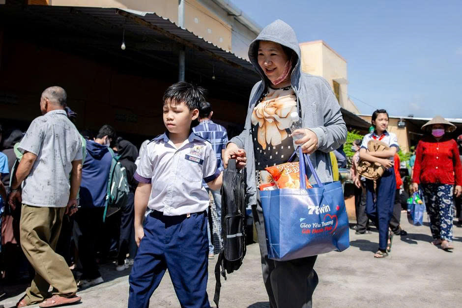 Trên nền trời xanh, mây trắng của Tiền Giang, những gương mặt rạng rỡ, ánh mắt sáng ngời của người dân và trẻ em nơi đây đã trở thành minh chứng sống động cho sự lan tỏa của lòng nhân ái. 78win đã trao tặng 200 phần quà thiết thực, gồm gạo thơm, mì tôm nóng hổi, dầu ăn, nước tương, bột canh, muối, đường, bánh Chocopie, lạp xưởng, bún khô và sữa – những nhu yếu phẩm đời thường nhưng vô cùng quý giá với những gia đình còn nhiều khó khăn.