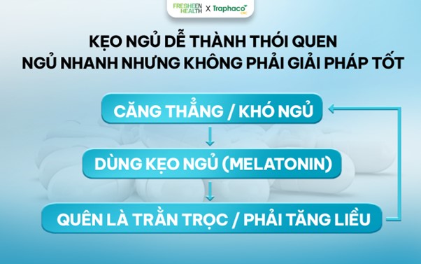 Trong hoàn cảnh đó, kẹo ngủ Melatonin trở thành lựa chọn quen thuộc vì mang lại hiệu quả nhanh. Chỉ cần sử dụng là có thể vào giấc. Tuy nhiên, sự tiện lợi này che giấu một vấn đề lớn hơn: sự phụ thuộc hình thành âm thầm theo thời gian.